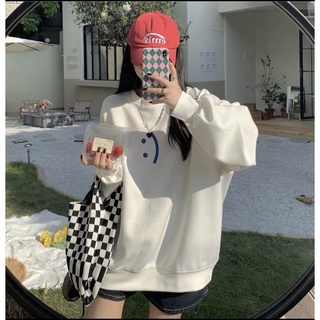 Áo Nỉ Dài Tay Unisex Mặt Cười Dáng Rộng