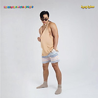 Áo ba lỗ màu be mặc phối với quần sọc màu sắc tươi tắn nam Hungtubes đi dao phố đi biển