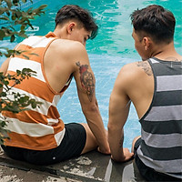 Áo ba lỗ kẻ sọc và quần ngắn đi du lịch đi biển của Hung Tubes
