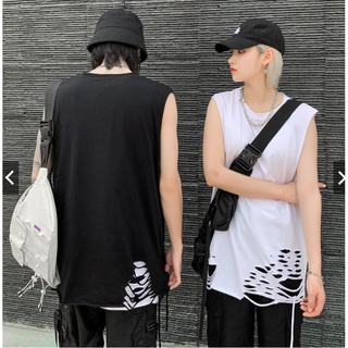 Áo tanktop rách tà trơn, áo ba lỗ rách nam nữ unisex form rộng chất mát co giãn.