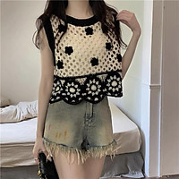 MS1085 Áo ba lỗ đan móc đính hoa đi chơi đi biển