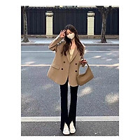 Áo Khoác Len Lông Cỗ Vest Màu Nâu