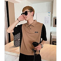 Áo Polo Nam Cộc Tay Họa Tiết Phối Cổ Phối Tay CF màu Nâu, Chất Liệu Cotton Co Giãn Nhẹ