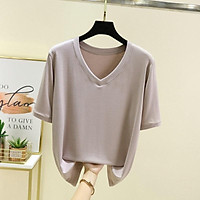 Áo thun nữ mùa hè 2021 cộc tay, cổ tim, phông trơn vải cotton co giãn tốt