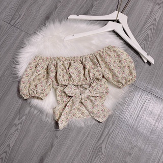 Áo croptop trễ vai 2 tầng cộc tay bồng bánh bèo, áo trắng trần nhẹ nhàng