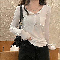 Áo len dài tay VẠT BẦU chất gân tăm có túi ngực gọn dáng cho bạn gái