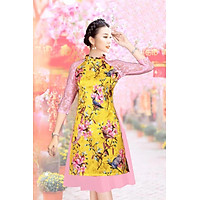 Áo dài cách tân nữ tết 4 tà màu vàng