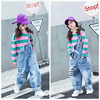 Set Quần Yếm Jean Bé Gái Kèm áo cao cấp YF - YDX014-1