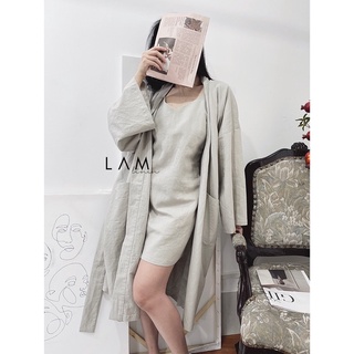 Set đồ mặc nhà cao cấp - Đầm 2 dây- Áo khoác Kimono Linen premium