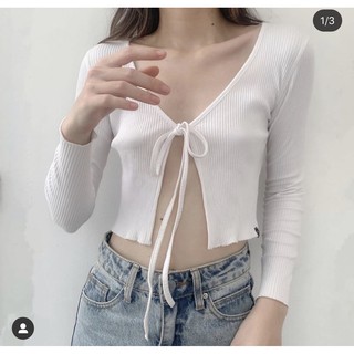 áo tay dài cột dây ngực chất thun gân, ảnh chụp thật