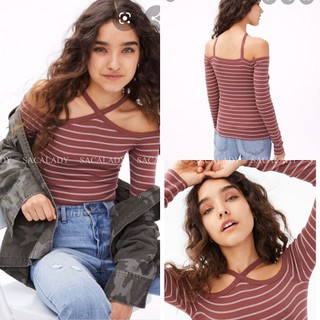 Áo Thun SERIOUSLY SOFT Hồng Sọc Trắng Bẹt Vai Dây Chéo - 2562