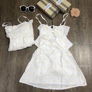 Đầm hai dây voan in hoa cúc kín áo tinh khôi TTSA0342