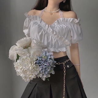 áo bẹt vai croptop voan kiếng rút ngực kèm hình thật