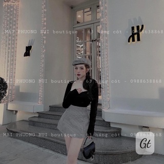 Set áo dạ cúc ngọc mix chân váy