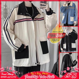 Áo khoác gió 2 lớp kéo khóa sọc vai form rộng unisex