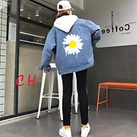 Áo khoác bò mũ hoa cúc chảy rãi COE977