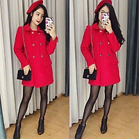 Áo Khoác Dạ Dài 4 Nút Màu Đỏ , Áo Dạ Dáng Dài Túi Xéo 2 Lớp Dày Dặn Hàng Quảng Châu Cao Cấp
