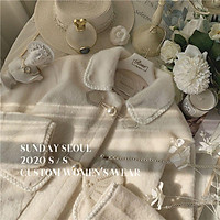 Sỉ Áo khoác dạ Tweed cúc ngọc tiểu thư thắt nơ cổ