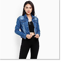 Aó Khoác Jeans Nữ Cổ Bẻ Thêu Sau Xanh J023