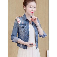 Áo Khoác Jean Nữ Thêu Hoa Dài Tay Thời Trang