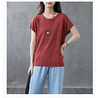 Áo len mỏng mongtoghi kẻ ngang cổ viền X, Áo kiểu len cổ tròn ngắn tay AL7534 - NhiNhi Shop