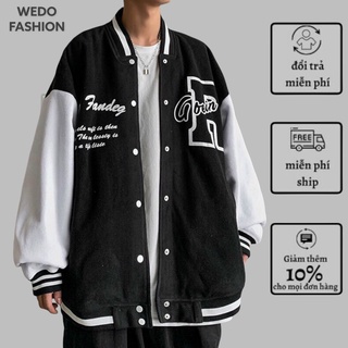 Áo khoác bomber dù nhung bóng chày unisex form rộng 80-90 nam nữ ulzzang