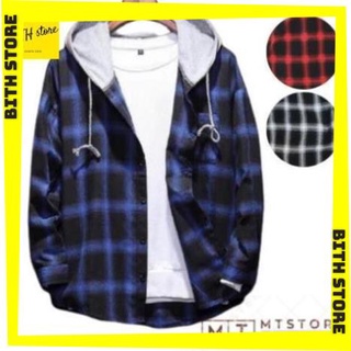 Áo khoác Sơ mi caro có mũ chống nắng phong cách Hàn Quốc
