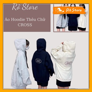 Áo hoodie form rộng nam nữ unisex thêu chữ CROSS phong cách Hàn Quốc mũ áo 2 lớp dày dặn RÔ STORE HD08