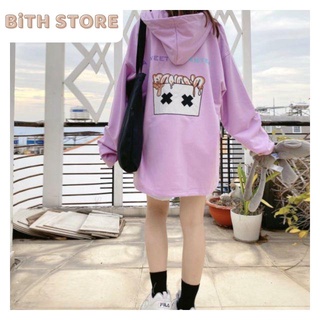 [TAI THỎ] Áo khoác nỉ nữ form rộng có mũ gắn tai thỏ trên mũ cực cute