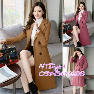 Hàng nhập - Áo khoác nữ dạ len 4 nút màu hồng phớt, áo dạ nữ form dài thời trang thu đông