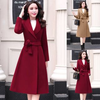 Hàng nhập - Áo khoác dạ nữ đai kết hoa hồng, áo ấm mùa đông form dài