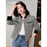 Áo khoác dạ sọc xéo form ngắn phối viền đen