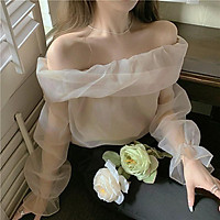 Áo trễ vai tay bồng tơ hoa nổi [Tay 2 lớp] Áo kiểu nữ tiểu thư