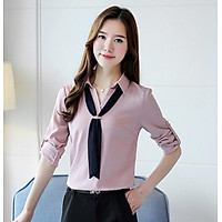 Áo kiểu nữ tay lỡ cổ phối nơ sang trọng - dài qua gối tnhichs hợp mặc công sở