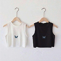 Áo croptop 3 lỗ thêu bướm hottrend - hàng loại tốt giá tận xưởng kèm hình chụp thật