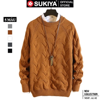 Áo Len Nam Cổ Tròn Họa Tiết Đan Thừng SUKIYA Chất Liệu Len Dày Ấm AL02