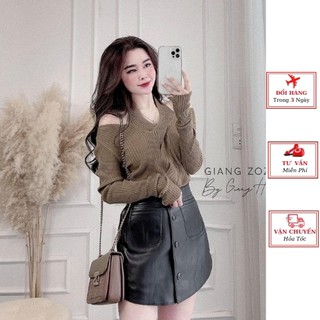 Áo len tăm ôm trễ vai điệu đà cổ áo cách điệu hàng QC