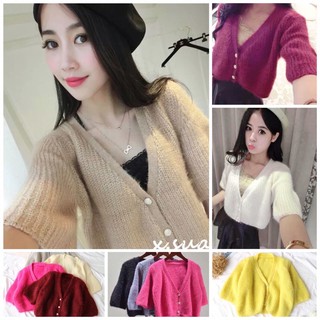 Áo Cadigan Len Dệt Kim Tay Cộc Màu Hồng- Hàng Quảng Châu Loại 1- Áo Len Tay Cộc Nữ