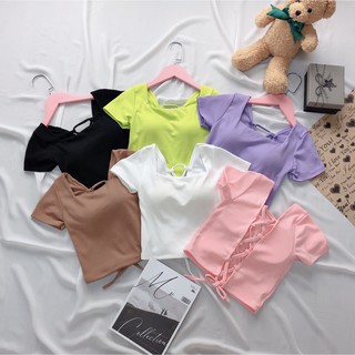 Áo thun CROPTOP,áo cổ tim rút dây siêu xinh