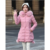 Áo phao sen hông trần bông đại hàn, dáng dài có mũ Toson AKD99P81