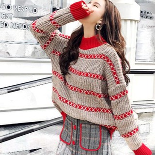 Áo Len Viền Dấu Nhân Kẻ Sọc Ngang Cổ 3 Phân SAVVY Sweater Thời Trang Nữ Thu Đông Mịn Đẹp