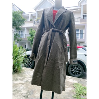 Áo khoát dạ ép dáng dài màu xám cột eo