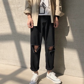 Quần Jean nam Đen Xả Lai Rách Gối Unisex - quần bò nam hàn quốc