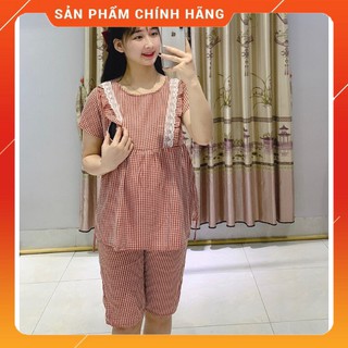 Bộ đồ bầu thiết kế viền ren chất da cá siêu xinh mặc bầu và sau sinh BD908