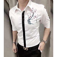 Áo sơ mi, Áo sơ mi nam cổ đứng thêu hoa văn, vạt chéo tạo điểm nhấn cho chiếc áo của bạn, sang trọng, lịch lãm H37