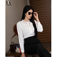 Áo Sơ Mi NK FASHION Thiết Kế Cổ Chữ V Phối Ren Bèo Thanh Lịch Chất Vải Nhập Hàn Cao Cấp Không Nhăn NKSM2202005