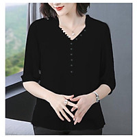 [EVACICI] Áo sơ mi nữ cổ V CÚC GỖ babydoll voan tay phồng, Áo sơ mi nữ cổ V tay bồng siêu xinh