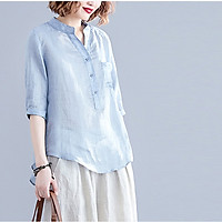 Áo sơ mi nữ cổ trụ linen tay lỡ trẻ trung, chất liện linen mềm mát, thời trang phong cách trẻ