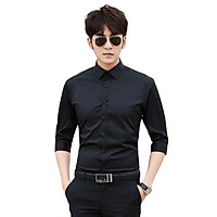 Áo sơ mi nam form body slim fit, phong cách Hàn, không túi, vải Bamboo màu trơn, hiệu Amazing