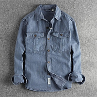 Áo sơ mi nam denim tay dài vải denim một túi sang trọng cao cấp